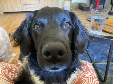 Maar hij is wel gewend in Nederland dat als vrouwtje met baasje belt, baasje bijna thuis is. En dan gaat meneer recht tegenover me zitten, me heel indringend aankijken en soms ook nog even zijn pootjes erbij. Waar is baasje nou?! Issie er al?!?! Op de speaker baasje horen snapt hij niets van. Alsof hij dat geluid niet kan herkennen als zodanig en hij heeft zeker niet door waar het geluid vandaan komt. Enkel het geluid van de telefoon die afgaat herkent hij....
