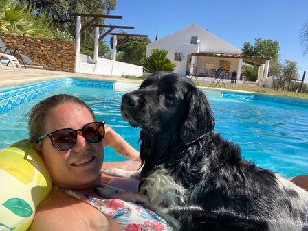 Taeke kon weer lekker zwemmen toen ik klaar was! Minder leuk is als je dan nét klaar bent, de buurboer op de trekker door het land gaat om het land om te woelen.....1 grote stofwolk richting zwembad 😂😂 je ziet de trekker nog net achter de olijfboom. Gek genoeg trok hij maar 1 spoor en toen ging 'ie weer🤷🏼♀️ Misschien moet het toch nog iets langer indrogen ofzo...