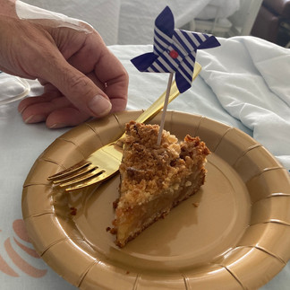 Wij zijn het middag bezoekuur bij hem geweest. Om de beurt....dus om de beurt een stukje taart eten met hem (hij dus 2 stukjes hè!😉😅). We hadden samen cadeautjes verzamelt: Karin Nederlandse stripboeken van Asterix en Obelix en ik de Portugese versies er van. Kan 'ie mooi Portugees oefenen! En natuurlijk Laura haar kaart, waar hij erg blij en ontroerd om was! Tja en dan is bezoektijd snel om...helaas....Karin en ik zijn nog even langs het winkelcentrum gegaan om daarna thuis aan het zwembad nog even verder te proosten op Peter. Wat Peter natuurlijk via de app allemaal volgde 😃 's avonds zijn wij uit eten gegaan hier om de hoek. Lekker gegeten, lekker gebabbeld samen. Proost Peter!