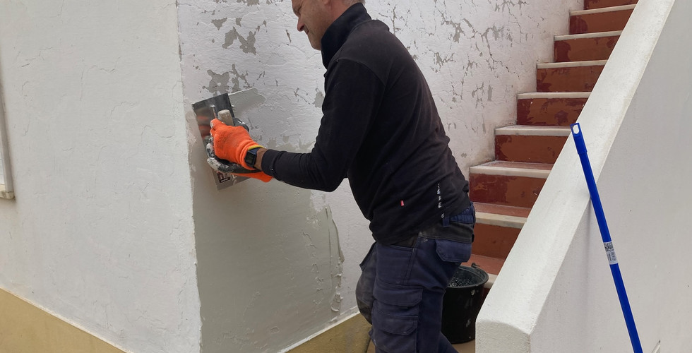 Dan natuurlijk de klussen aan de buitenkant van het huis! Er zijn nu 2 kanten van het huis herstelt en voorzien van een knappe laag stuk- en schilderwerk. Iets wat we zien bij de Portugezen is dat ze elk voorjaar hun huizen witten. Niet met een knappe laag verf, maar met kalk. En zelfs als ze wel met verf werken, dan is dat niet altijd van de beste kwaliteit en ze werken graag laag over laag over laag over laag. Zonder een afbladderende laag bijvoorbeeld eerst te verwijderen...dus problemen lossen ze niet op. En iets wat we meer dan eens tegenkomen op internet bijvoorbeeld over hoe dat op te lossen: een waterdichte, niets doorlatende verf op je muur smeren, "want dan kan er geen water meer in" (Maarja, er ook niet uit......) Wat je dan krijgt: problemen! We kunnen nu in ieder geval na de eerste winter en regenseizoen zien dat de muur die het volst in de regen staat en binnen vroeger duidelijk vochtproblemen had, dit jaar droog is gebleven! Het loont dus echt wel om die buitenmuren goed te beschermen!