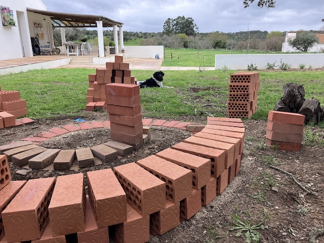 Ik ben ook bezig geweest met mijn eigen project. Al langer, sinds eind januari al, maarja, ik ga niet zo snel hè 🫢 En omdat het sjouwen met e.e.a. voor mij snel teveel wordt, heeft Peter later toch maar even geholpen met het sjouw- en bouwwerk. Ik heb namelijk een kruidenspiraal gemaakt! Dat wilde ik zoooo lang!! En hier hebben we de ruimte! Mooi onder de grote steeneik, zodat zeker straks in de hitte periode er wat half schaduw over mijn kruidjes hangt op het heetst van de dag. Een heel proces....maar inmiddels is deze dus gevuld met de eerste kruiden. Er komt nog wel wat bij en natuurlijk even zien wat er werkelijk gaat aanslaan. Maar dat vormt zich wel in de tijd. De spiraal mag gaan leven....Sowieso was er direct al, toen de bakstenen nog niet netjes lagen, al allerlei leven te vinden. Van rupsjes tot miljoenpootjes, van miertjes tot baby gekko's. Ik heb het bouwproces ook in een filmpje op Instagram geplaatst (en genoeg andere filmpjes) en die kun je dus ook heel makkelijk gewoon op onze Homepage vinden én bekijken. (Je hebt zelf dus geen Instagram nodig om het te kunnen kijken. )