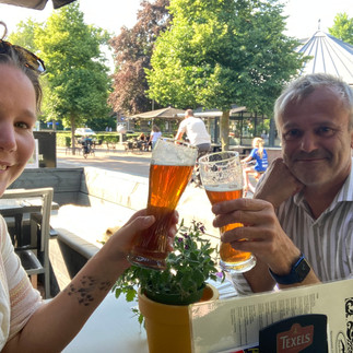 En omdat we nu plots een week in Nederland waren, konden we ook naar de intocht van Laura haar wandelvierdaagse finale! Eerst wat geproost en gegeten om toen te gaan wachten op de inkomende lopers. Samen met Taeke, die weliswaar bang was voor de trommels van de fanfare, zat braaf te wachten in de menigte en was heel blij was Laura weer te zien!